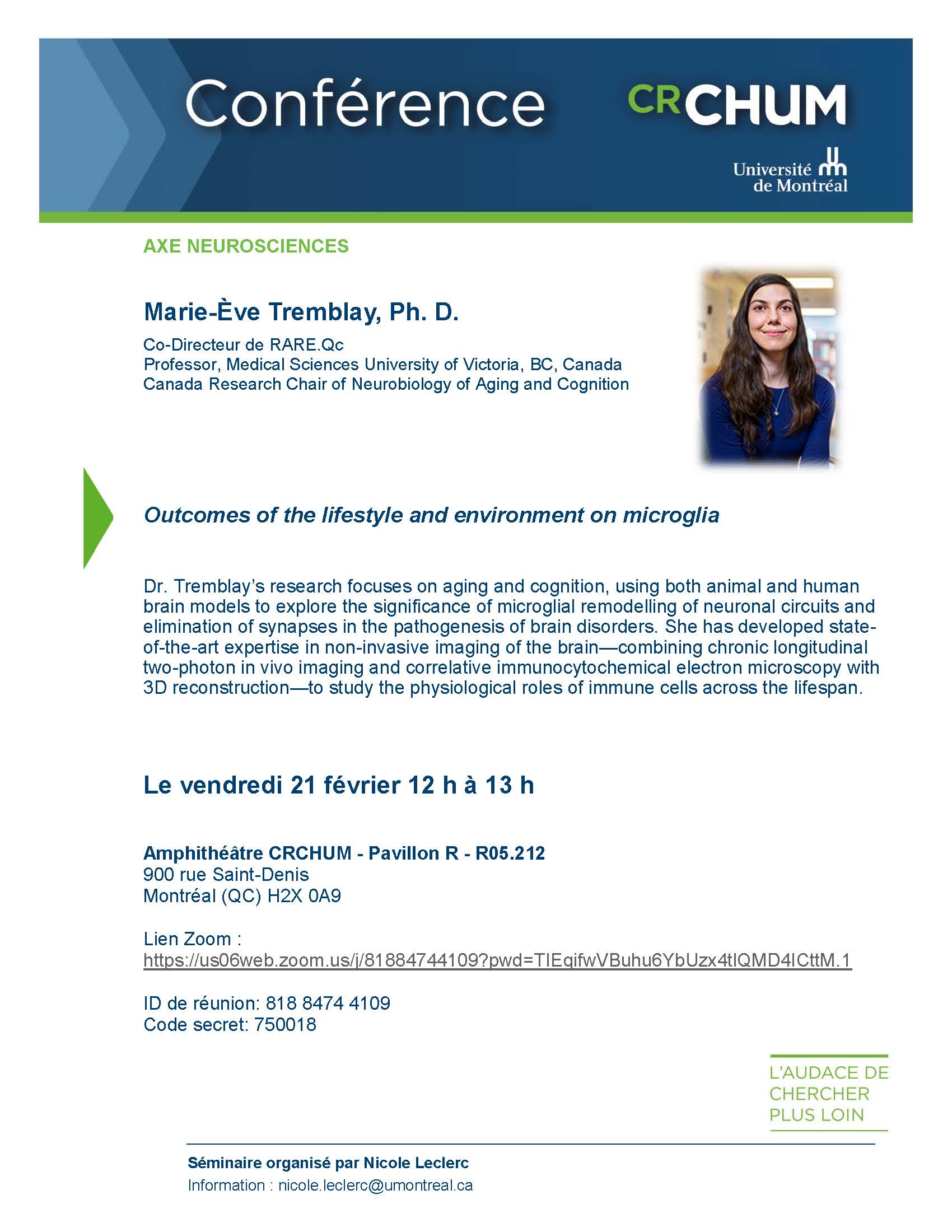 Lieu : Amphithéâtre CRCHUM - Pavillon R - R05.212 et ZOOM