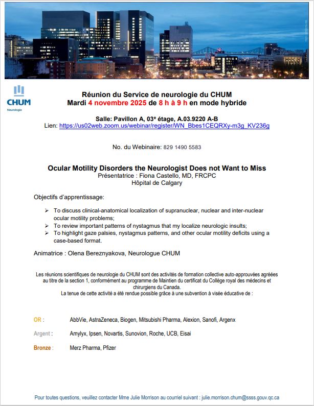 Accueil / Calendrier / Réunion du Service de neurologie du CHUM