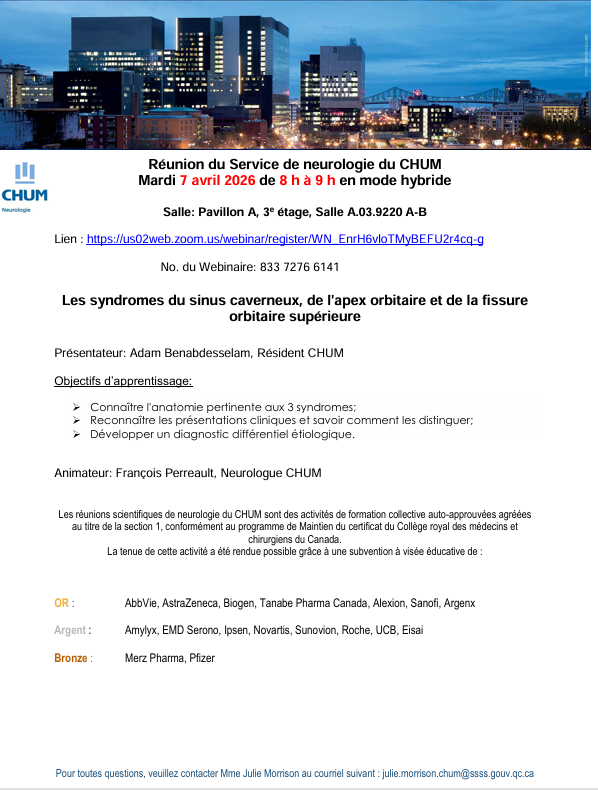 Accueil / Calendrier / Réunion du service de neurologie du CHUM